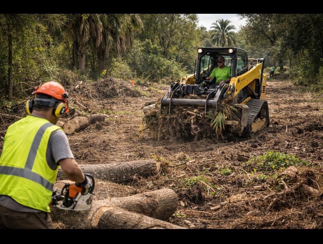 Vacant lot clearing, overgrown cleanup, brush and debris removal, Tree removal, stump grinding, and land prep for upcoming projects.